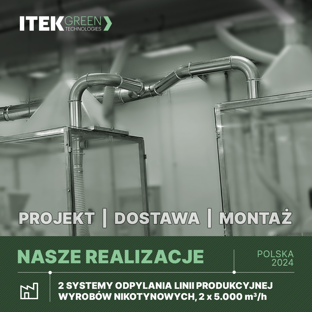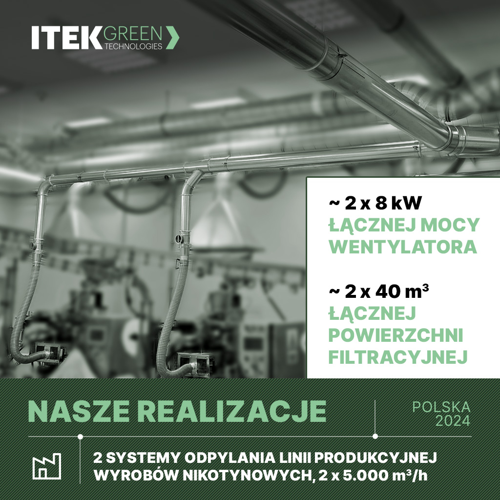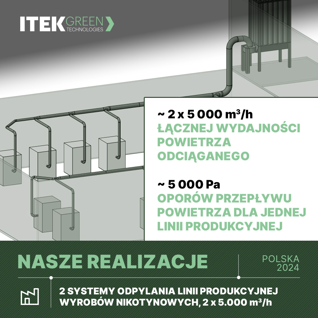 Realizacje | 2 systemy odpylania linii produkcyjnej wyrobów nikotynowych, 2 x 5 000 m3/h