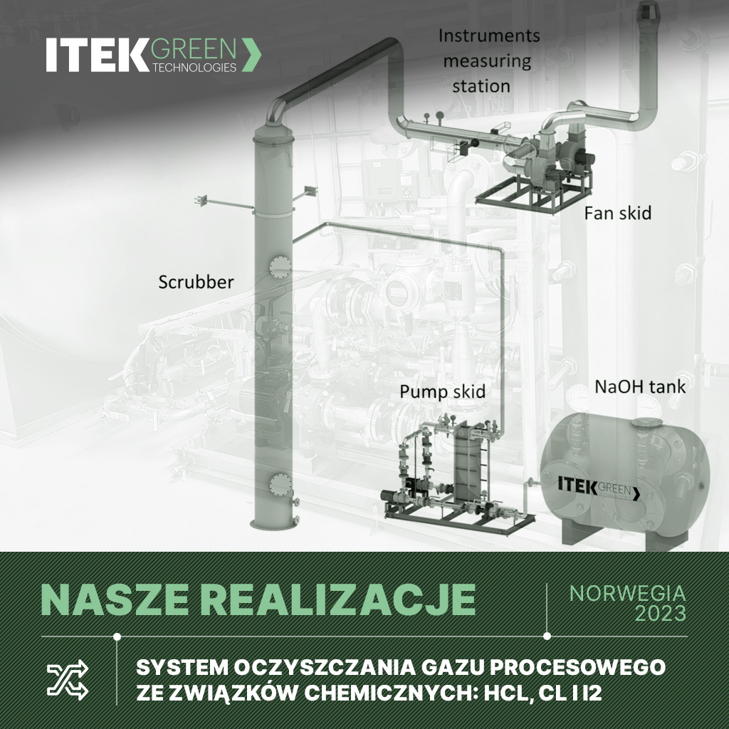skruber / płuczka chemiczna, zbiornik NaOH, układ pompowo-wymiennikowy, rury i armatura AISI 316, czujniki, klapy, wentylatory, podpory, kanały, automatyka, szafa AKPiA, kablowanie, sterowanie, projekt, dostawa i montaż, uruchomienie, szkolenie.