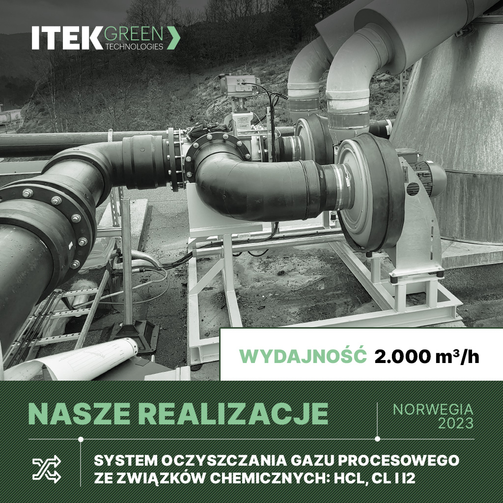 Projekt, dostawa i montaż – Przemysł farmaceutyczny, producent środków kontrastowych – System oczyszczania gazu procesowego z związków chemicznych: HCL, CL i I2 – wydajność 2.000 m3/h